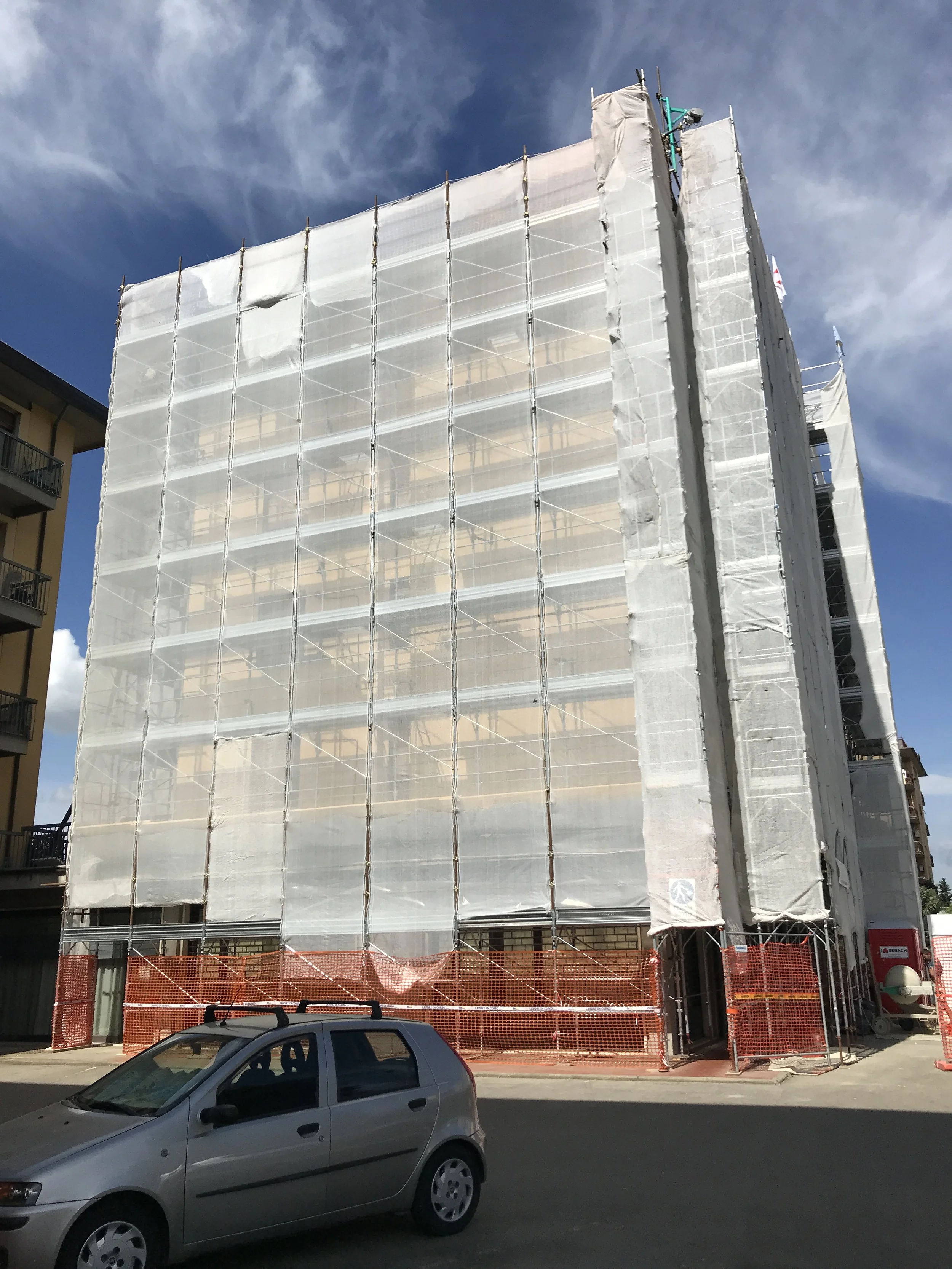 Si propongono soluzioni personalizzate per ponteggi a telai prefabbricati e/o tubo/giunto con sbalzi, accessi carrai, mantovane parasassi e posa di teli di protezione.